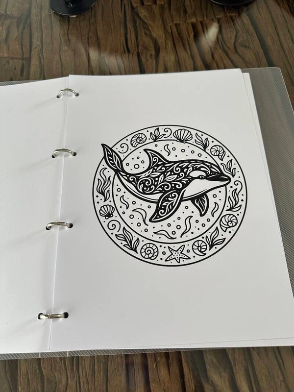 Duik in een wereld vol golven, schelpen en zeeleven met Oceaanlicht. Dit handgemaakte kleurboek bevat 20 betoverende oceaanillustraties, ingebonden in een transparante A4-map met uitneembare bladen.
