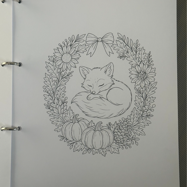 Betoverd door de Herfst – Dierenkransen bevat 20 prachtige kleurplaten vol warme herfstsferen en sierlijke kransen, omlijst met dieren zoals eekhoorns, uilen, vossen, egels en andere bosvrienden.